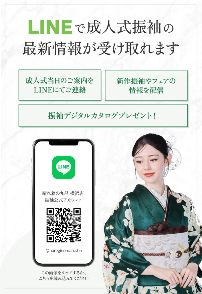 また、成人式振袖LINE公式アカウントに登録していただくと、最新情報をお受け取りいただけます。