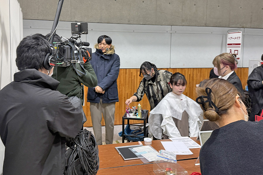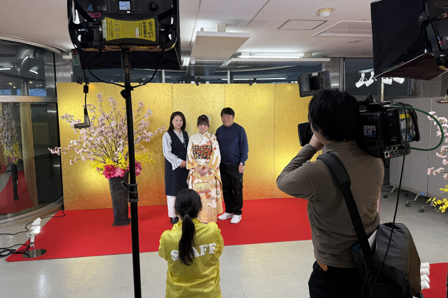 2026年1月12日 横浜市「二十歳の市民を祝うつどい」 の、晴れ着の丸昌 お支度会場にテレビ朝日「グッド!モーニング」の中継が入りました。